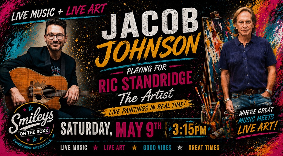 Local artist, Ric Standridge, will blow your mind as he paints live to the amazing sounds of Jacob Johnson! Watch as Ric transforms music into vibrant works of art using his gift of synesthesia—hearing colors—to create masterpieces before your eyes. Each piece will be available for purchase after the show.