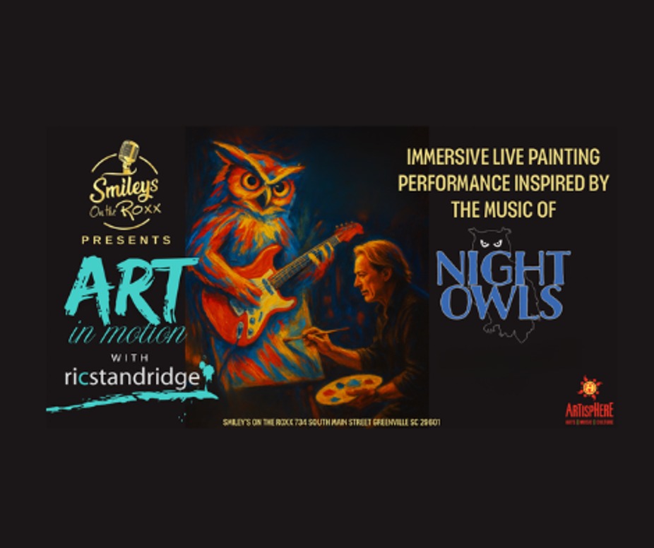 Prepare to be amazed as local artist, Ric Standridge, paints live to the upbeat sounds of The Night Owls! Watch as Ric transforms music into vibrant works of art using his gift of synesthesia—hearing colors—to create masterpieces before your eyes. Each piece will be available for purchase after the show.