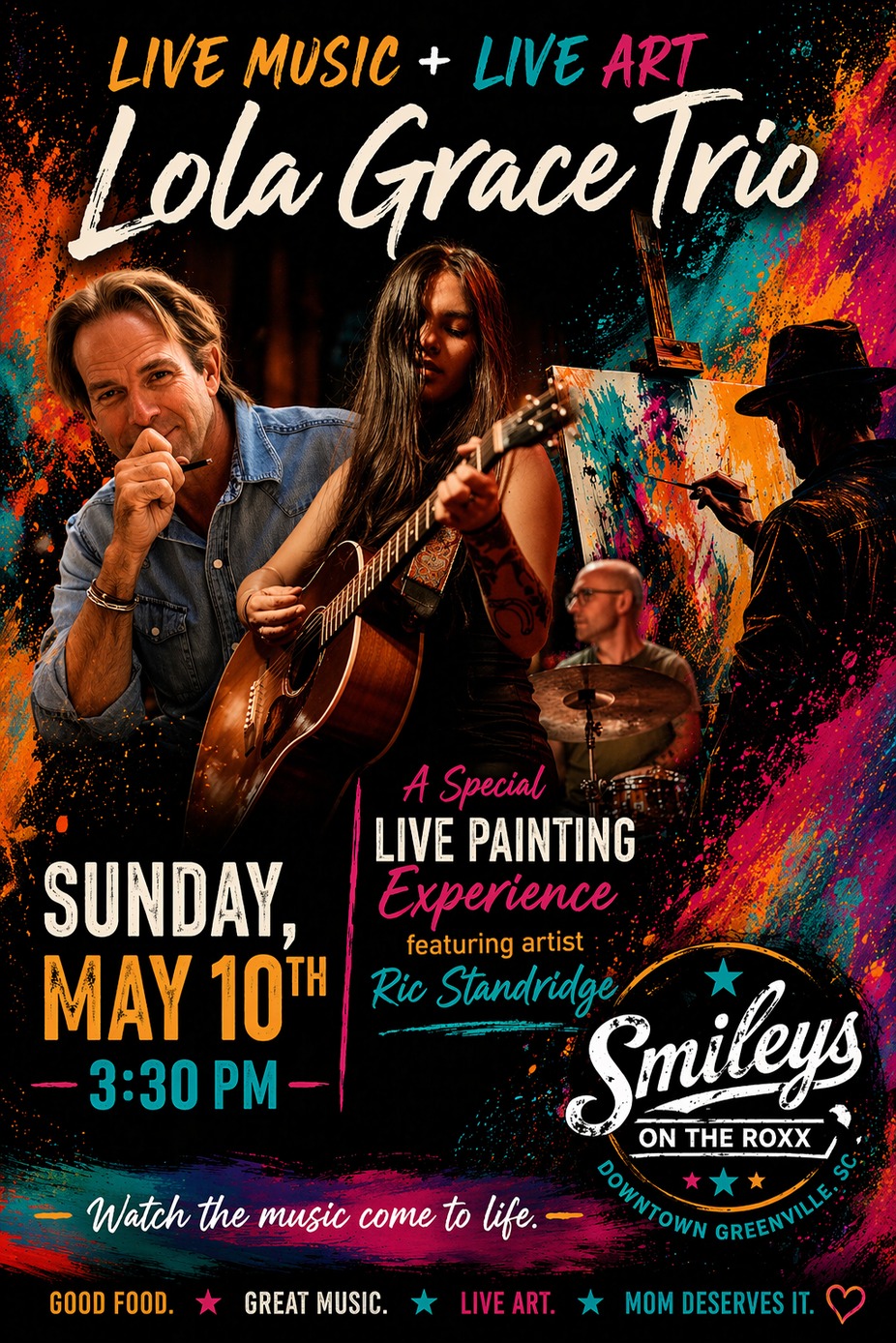 Treat mom to brunch and watch her be mesmerized as local artist, Ric Standridge, paints live to the classic country sounds of Luke Deuce & The Wildcards! Watch as Ric transforms music into vibrant works of art using his gift of synesthesia—hearing colors—to create masterpieces before your eyes. Each piece will be available for purchase after the show.