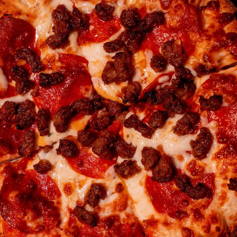 Add toppings for $0.75 (each): Pepperoni, Sausage, Mushrooms, Bacon, Jalapenos, Green Olives, Onion, Xtra Cheese