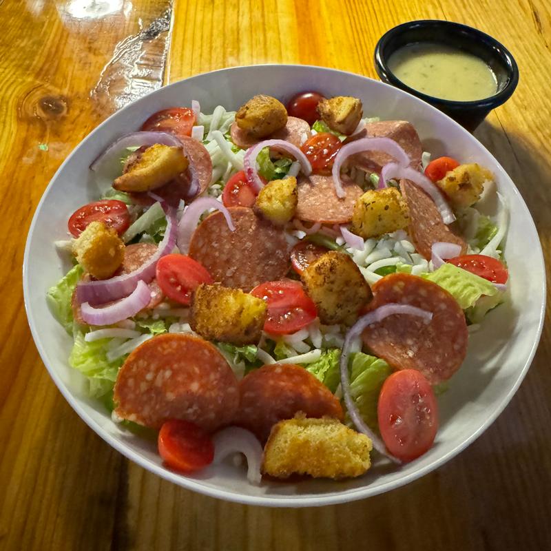 Romaine lettuce, tomato, red onion, pepperoni, mozzarella and croutons with Italian dressing.