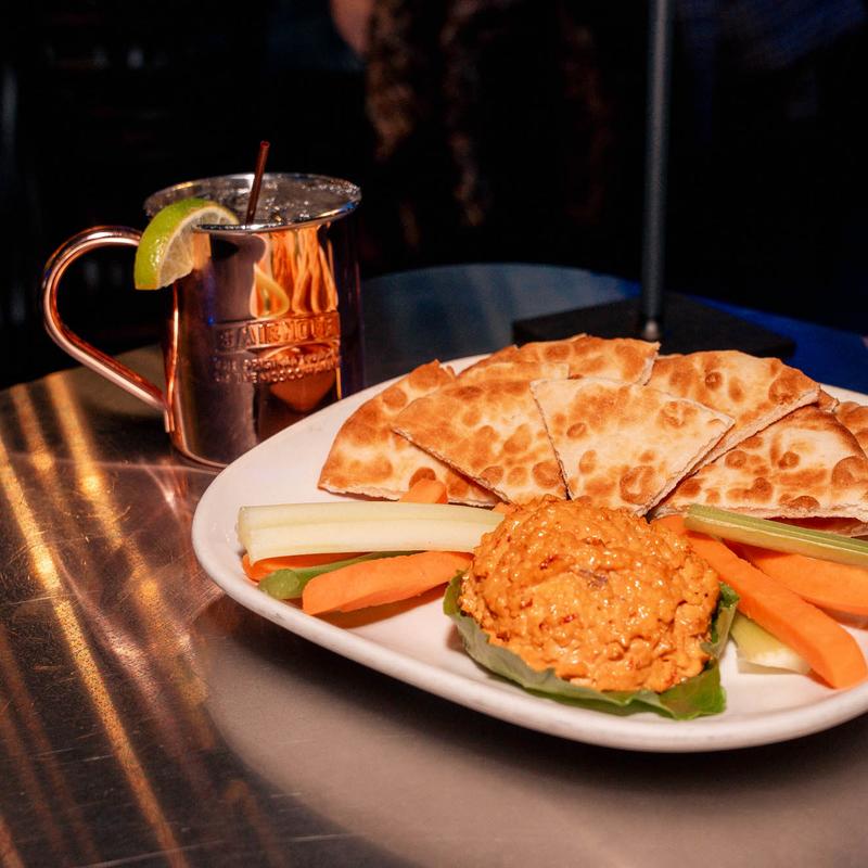 Served with carrots, celery, and pita